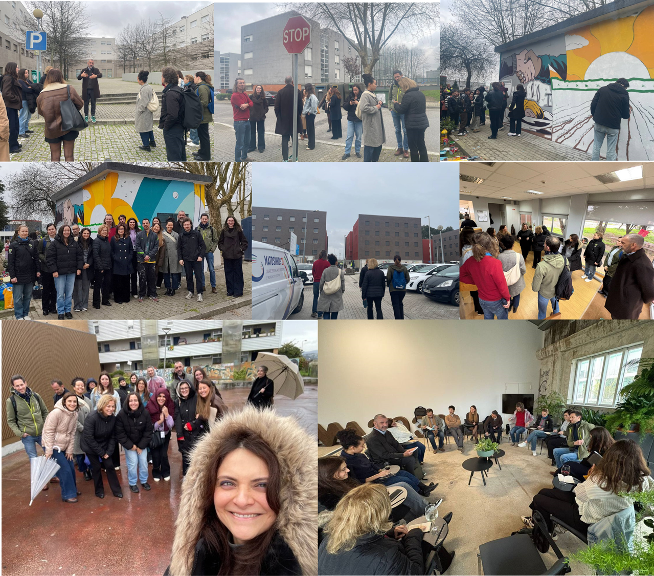 Day two featured site visits led by the MatosinhosHabit team, including Bárbara Sousa, Teresa Saturnino, Elisa Lopes, and Cristina Nora. The team showcased local social housing projects and community-driven initiatives. The group visited Recarei and São Gens neighborhoods, observing ongoing social housing developments and community-led efforts. These visits were accompanied by Deputy Councilor Manuela Alvares, responsible for housing within the municipal executive. A notable stop was the first Second-Chance School created in Portugal, AE2O (Associação para a Educação de Segunda Oportunidade—Second Chance Education), which highlights how collaboration fosters social inclusion and provides learning opportunities for youth at risk of early school leaving. The afternoon was dedicated to visit to the case study in Gaia at D. Manuel Martins neighborhood, guided by Carla Pires, Ricardo Amílcar, and Catarina Ciríaco. The day concluded with a panel discussion titled “What remains of projects beyond their completion for the communities involved in them?” at Fábrica Vasco da Gama a former fish-canning factory transformed into a space for community initiatives and exhibitions. The session was moderated by José Carlos Mota and featured panelists Tiago Lopes (Environmental Engineer at Matosinhos Municipality), David Leite Viana (Head of Urban Planning Division at Matosinhos Municipality), Bárbara Sousa (Social Project Manager at MatosinhosHabit), and Sandra Rosas (Project Manager at Lipor).